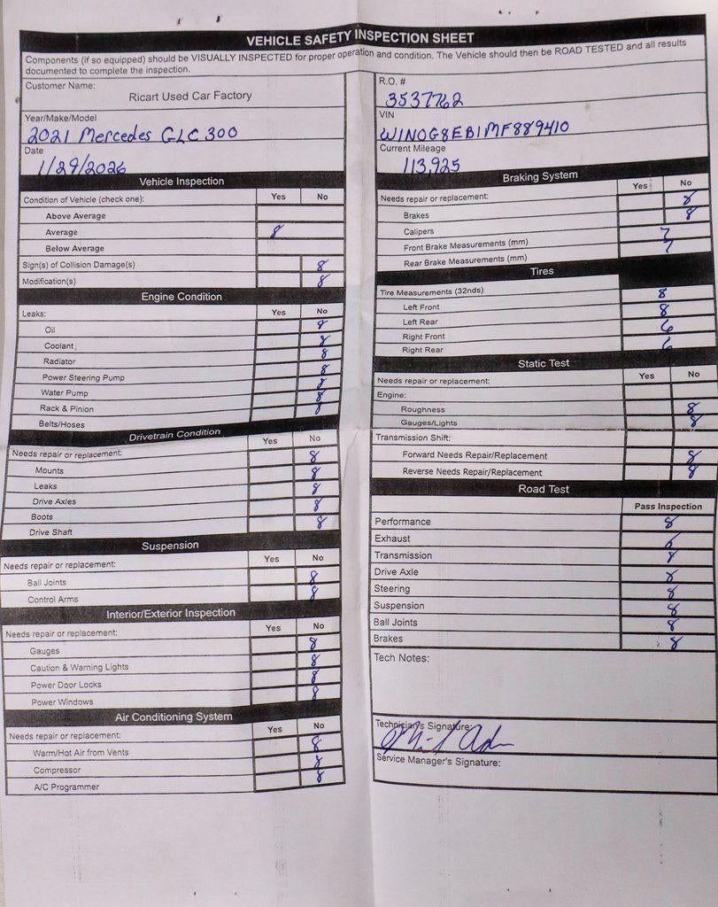 This 2021 Mercedes-Benz GLC 300 4MATIC delivers refined luxury and confident all-weather capability in a compact SUV with timeless design. The cabin is finished in Black MB-Tex and elevated by the Premium and Multimedia packages, featuring Mercedes-Benz Navigation with MBUX Augmented Reality, a 12.3-inch digital instrument cluster, and a 10.25-inch center display for a truly modern driving experience. Comfort highlights include heated front seats, a heated steering wheel, 64-color ambient lighting, a panoramic roof, and HANDS-FREE ACCESS for added convenience. Advanced safety and driver-assist features such as Blind Spot Assist, Active Brake Assist, PARKTRONIC with Active Parking Assist, and a rearview camera complete the experience—available now at Ricart Automotive Used Car Factory.