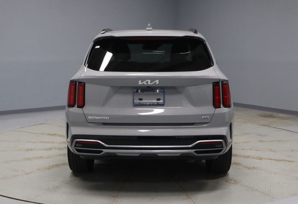 The 2023 Kia Sorento SX AWD delivers strong turbocharged performance with a 2.5L turbocharged inline-4 engine paired with an 8-speed transmission, producing about 281 horsepower and 311 lb-ft of torque for confident acceleration and everyday capability. Finished in Wolf Gray with a Black interior, this Sorento blends bold SUV styling with three-row versatility. Equipped with 20" gloss black finished alloy wheels, a Navigation System, and a power moonroof, it adds advanced connectivity and upscale comfort to its well-appointed cabin. Available now at Ricart Automotive Used Car Factory.