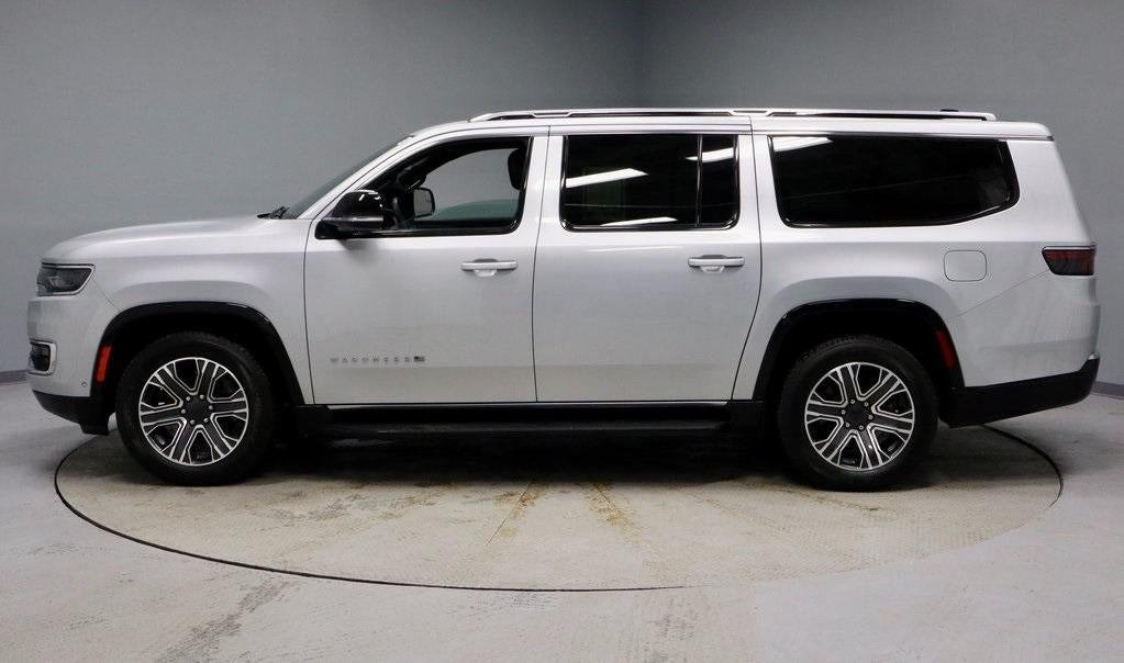 The 2024 Jeep Wagoneer L Series II 4x4 delivers full-size luxury, commanding presence, and expansive versatility in an extended-length SUV designed for premium family travel. Its confident four-wheel-drive capability and refined driving character make it well suited for long highway trips and changing road conditions alike. Inside, the cabin offers a spacious, upscale environment highlighted by an integrated navigation system and the Flexible Seating Group, providing adaptable comfort across multiple rows. Finished with bold 20" x 9.0" aluminum painted gloss black wheels, this Wagoneer L Series II 4x4 is available now at Ricart Automotive Used Car Factory.