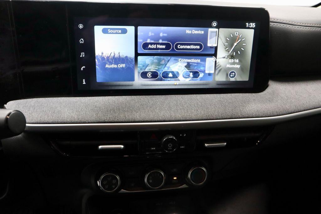 - Radio: AM/FM Audio System -inc: 12.3 color touchscreen display w/4 speakers, Bluetooth® hands-free phone system, streaming audio via Bluetooth®, audio and Bluetooth® steering wheel switches, USB C (data and charge) (front), NissanConnect featuring wireless Apple CarPlay, wireless Android Auto, Siri eyes free, SiriusXM satellite radio w/advanced auto features and hands-free text messaging assistant